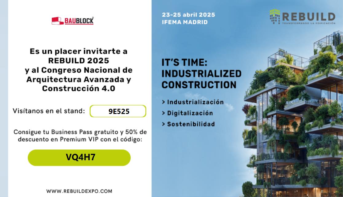 Del 20 al 22 de mayo de 2025, le invitamos a visitar el stand D158 de Baublock, el único productor de hormigón celular curado en autoclave (HCCA) en la Península Ibérica. ¿Por qué visitar nuestro stand? Demostraciones prácticasDescubra la rapidez y precisión de...